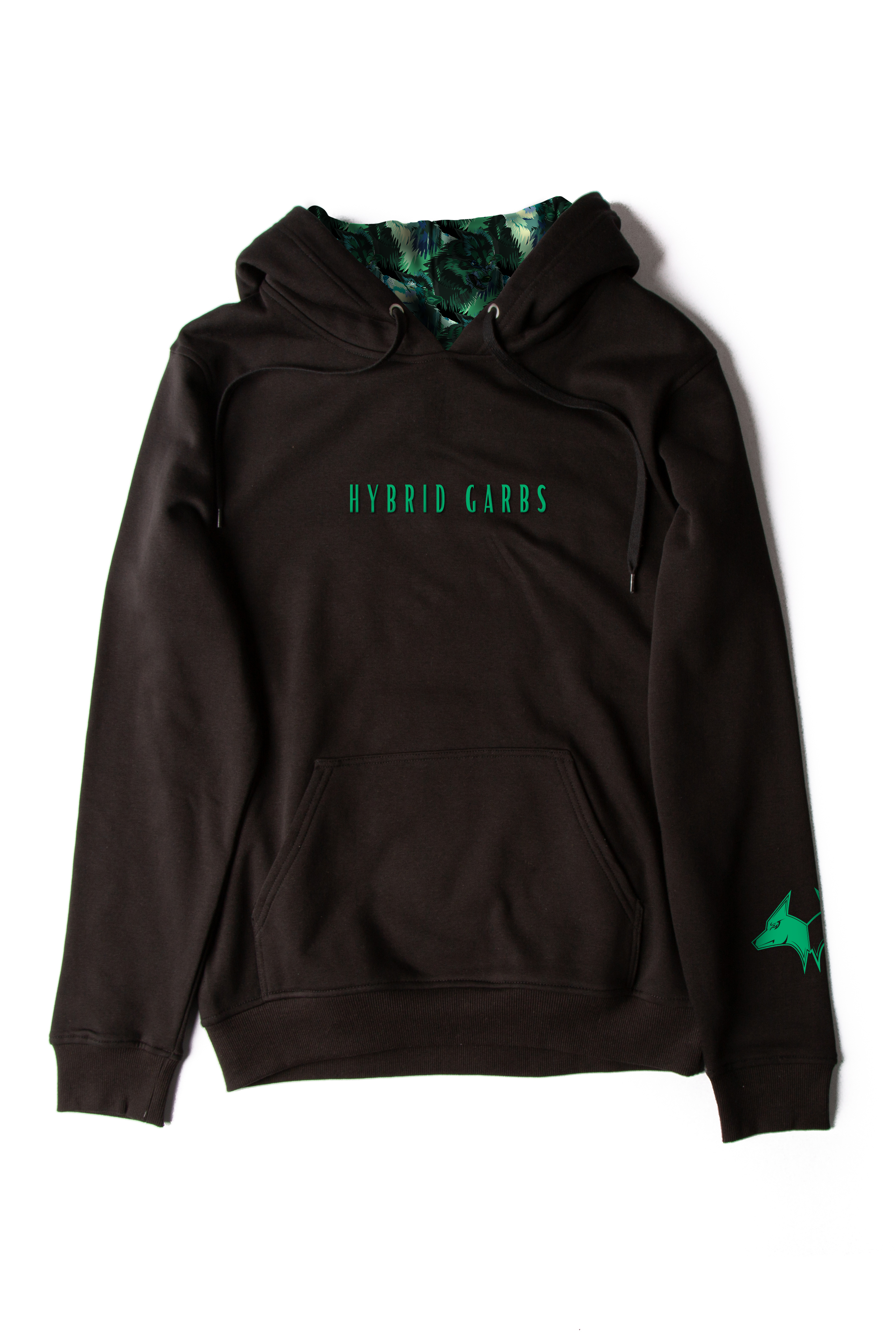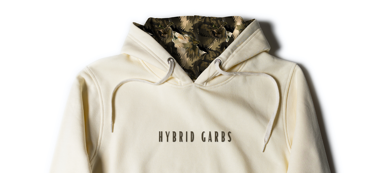 Visual mockups showcasing a luxury hoodie drop for Hybrid Garbs that emphasize custom silk linings, refined textures, and realistic lighting, capturing the intersection of streetwear culture and high-end design.